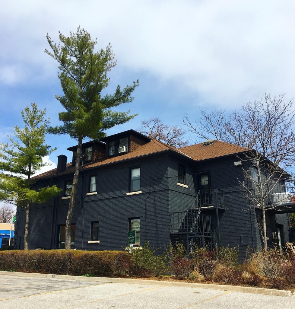 Updating curb appeal isn't just for your home. This commercial building got launched into the 21st century with another Theiner project using Sherwin Williams Tricorn Black.