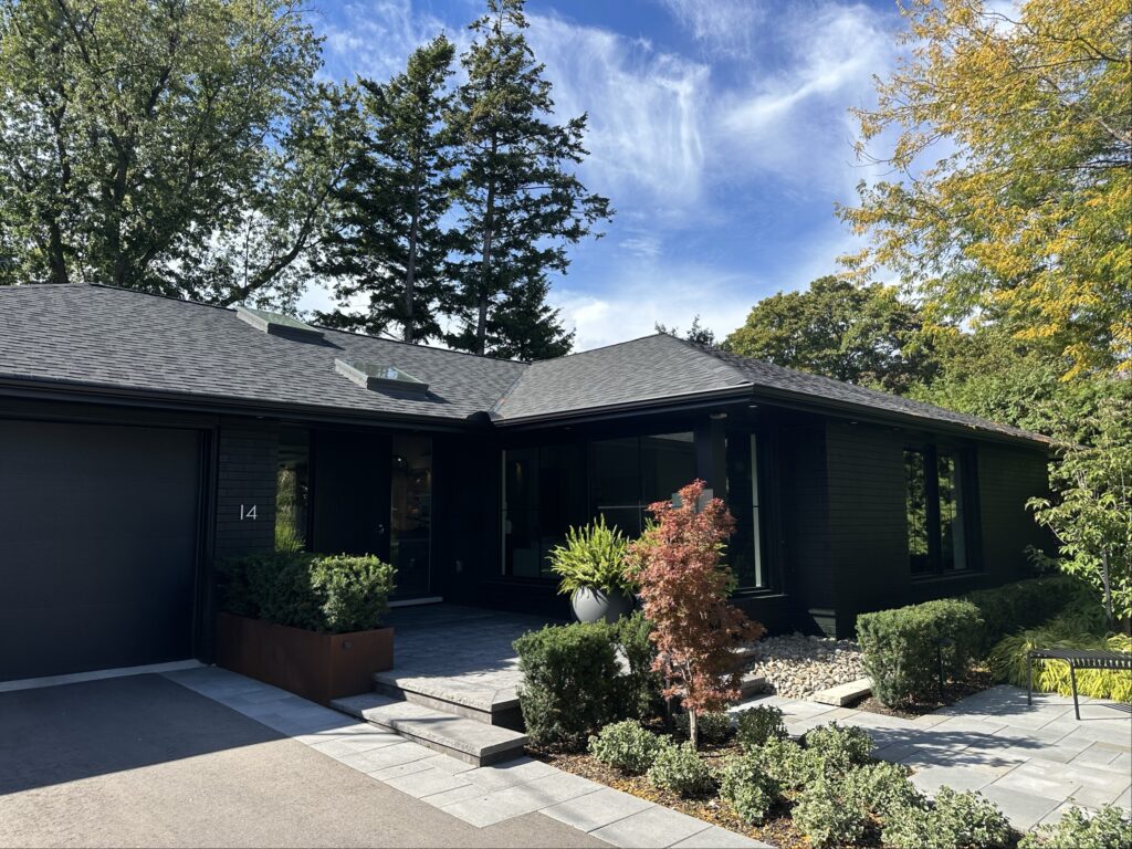 A lot of older brick homes have gone through stages of brick repairs over the years, most of which will not match the existing brick. This 1970's Etobicoke home was in desperate need of new owners to come in with a vision to transform, and transform they did. Painting out this brick with a Theiner favourite, Sherwin Williams Tricorn Black, made this house look like a newly built dream home.